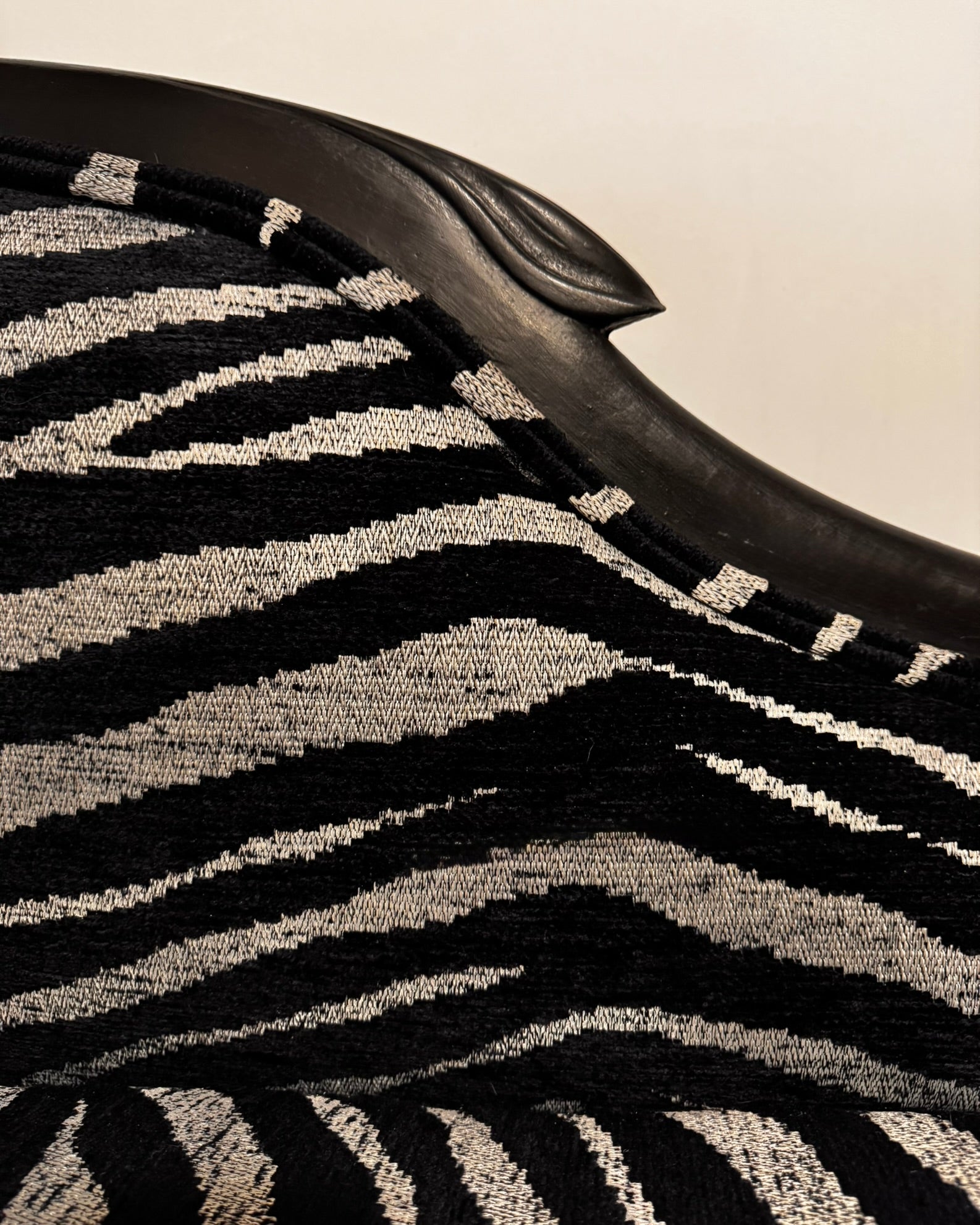 Perfect for those seeking statement seating. luxury reupholstered antique furniture, or a unique boutique home décor accent piece that is one of a kind.